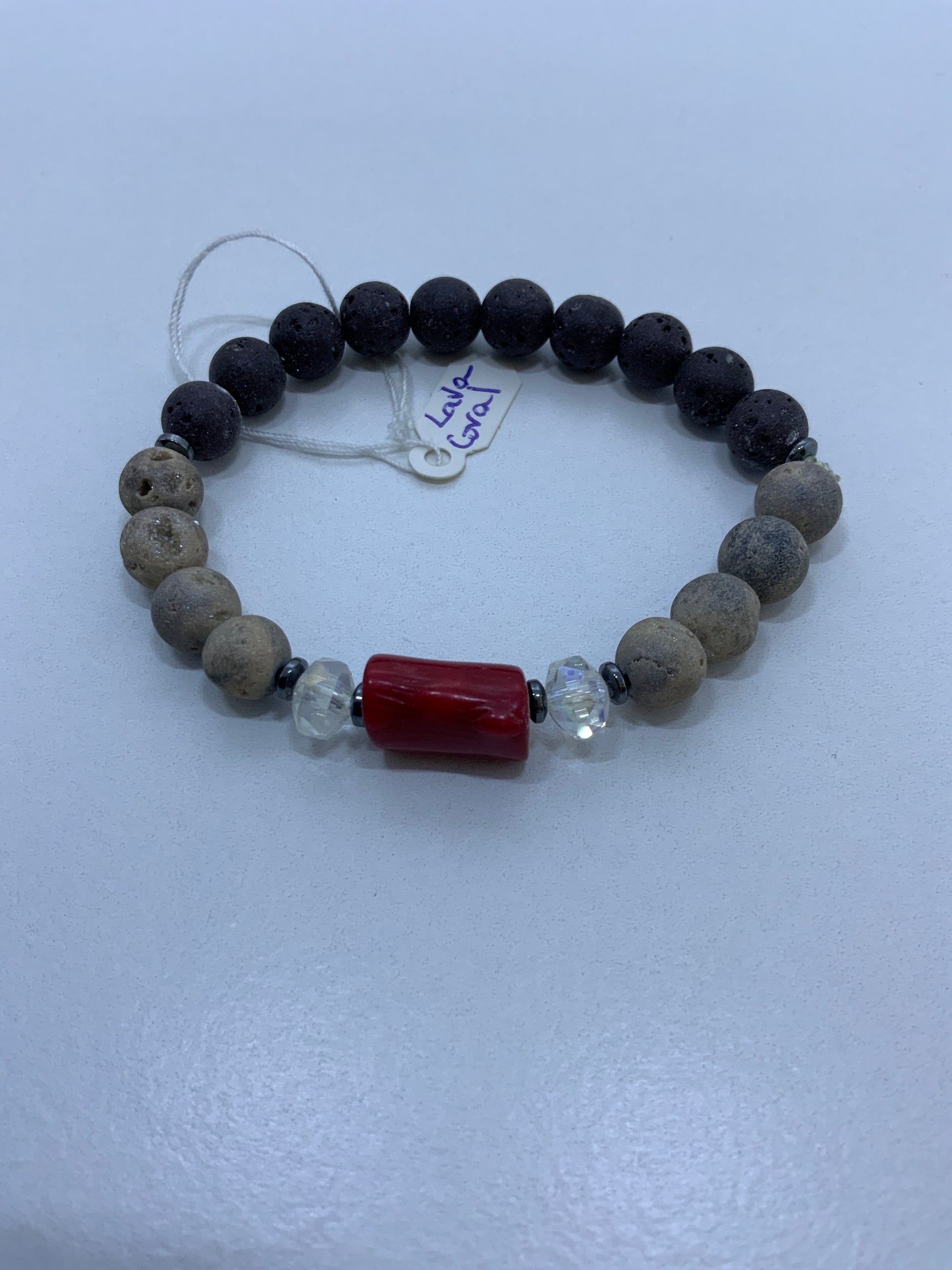 Agata Cristalizada con coral, piedra volcánica, hematita y cristales