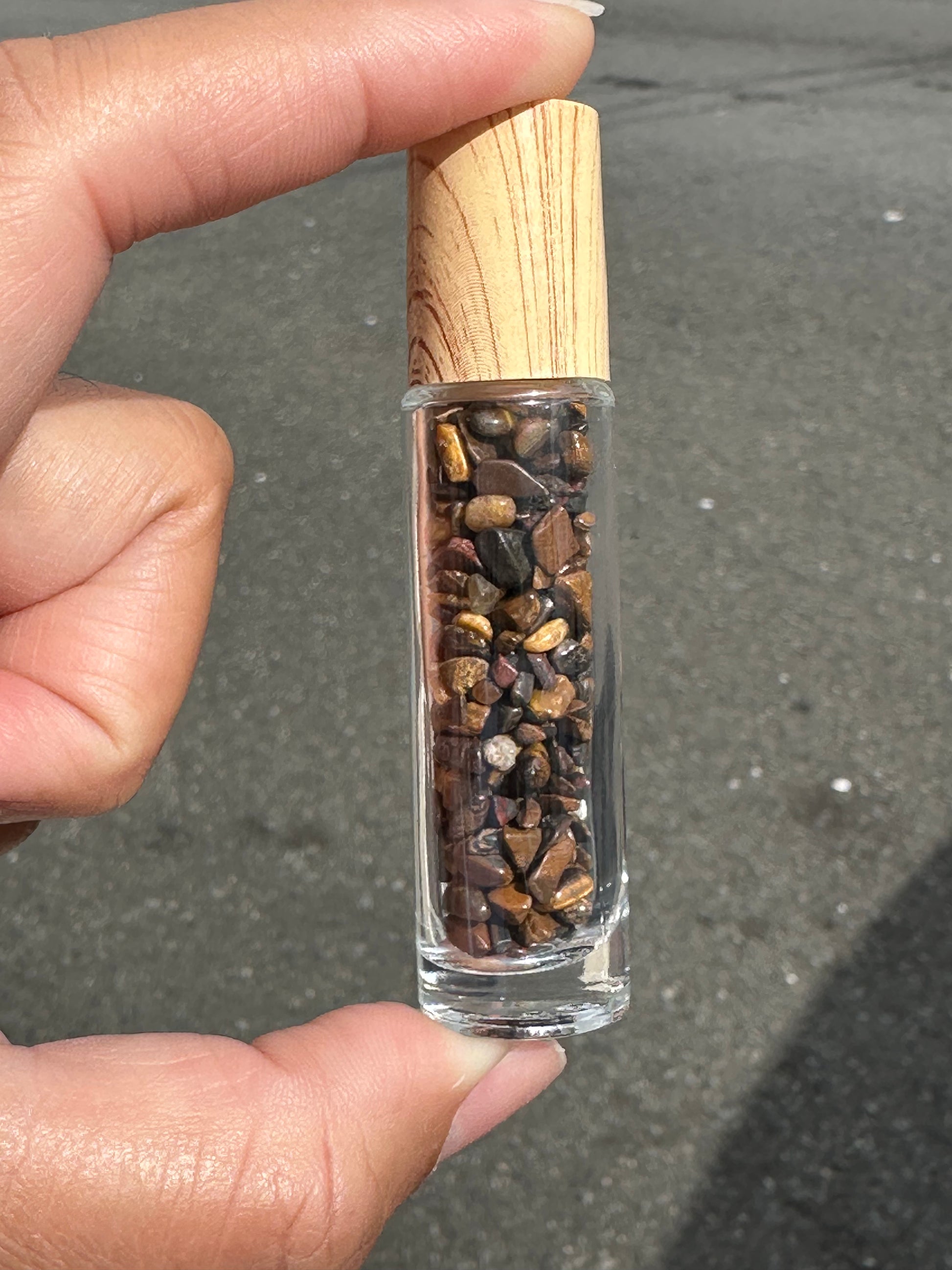 Rodillo relleno de piedras energéticas. En el cual puedes echar aceite esencial o tu perfume favorito para que lo energices.