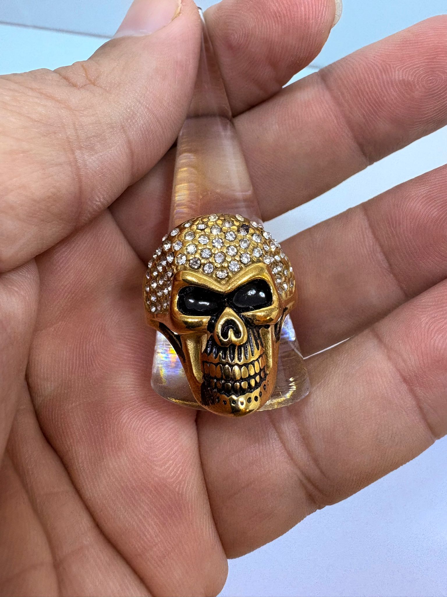Sortija dorada acero inoxidable con cristales y esmalte